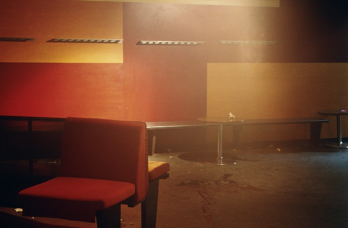 Una capa de sudor cubre mi cuerpo y vibra al ritmo del techno. Bailo mientras disociamos colectivamente. Esta arquitectura, apoyada en tecnologías sónicas y lumínicas, construye expectativas, dinámicas y deseos que se superponen. Todo ello genera códigos que desbordan lo estrictamente arquitectónico para inscribirse en el terreno de lo afectivo y lo político. Un encuentro inesperado intensifica esa superposición de elementos intangibles. Me veo en su mirada: semidesnudo en la pista de baile de este sexclub. Llevo un short deportivo y unos botines de cuero con calcetines blancos. Hay una tensión que no sé identificar. No puedo asegurar si se trata de atracción o rechazo. Busco la palabra. Me siento en una especie de friend zone marica, si es que tal cosa pudiese existir.